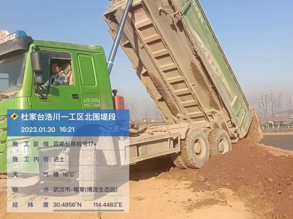 ? ? ? ?1月30日,在杜家臺浩川一工區北圍堤段百曲公路樁號17+現場,機械正在有條不紊的完成進土施工,杜家臺項目積極協調施工作業面,正以時不我待的精氣神,提速項目建設進度。
